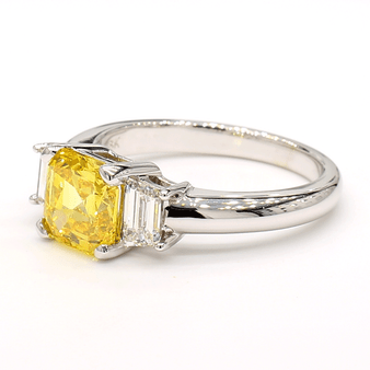 Sale Quick view Compare Renaissance Diamonds 1.86 tcwt Canary Yellow Radiant with Trapezoids Lab-Grown Diamonds 14Kt Yellow & White Gold Click For Video This striking ring features a radiant-cut canary yellow lab-created diamond as its c… Everyday Low Price Now $3,295.00 Was $3,995.00 Add to Cart